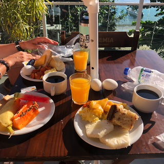 Our accommodation included an AMAZING buffet breakfast (complete with like 6 different kinds of cake...we learned that cake is a typical breakfast item in Brazil). We needed the energy as we had a 5 mile hike to the island's most famous beach: Lopes Mendes (which is adevertised all over the island as "Brazil's Second most beautiful beach," although there is no mention of what is first). We began the hike in Vila do Abraão (where we were staying) and headed east 1 km to the first beach, Abraãozinho before we began the uphill portion. It was a very unpopulated hike which allowed us to enjoy the jungle, ocean views, and sounds of each others panting through the heat and humidity. As this is NOT a flat island, you actually climb up about 2,300 feet during the trek. We also reached 2 additional beaches en route to Lopes Mendes, Das Palmas and Do Pouso - which had very few people and we thought were stunning. When we finally reached Lopes Mendes, we realized why it is so famous in Brazil. The beach is long and wide with white sands and even though there were a lot of people here, there was plenty of space to spread out and enjoy your own area. This proved an excellent location to bust out recently purchased paddleball set. We had packed sandwiches for lunch and enjoyed these after wearing ourselves out a bit swimming, reading, and playing paddleball. We made sure to leave enough time to hike back before dark and enjoyed our evening acai bowl before cooking dinner in our room and heading over to the beach in town to watch the sunset.