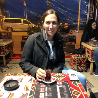 After seeing the mosques at sunset, we decided to catch them at sunrise the next morning too. After that, we set off on a river cruise along the Bosphorous. It was fun to see all of the sites along the water, but, for some reason, we did NOT get the guided information that we thought was supposed to be included, so we had to sort of make up backstories of what we were seeing. Later that day we finally ventured over to the area north of the Galata bridge. The difference in vibes was immediate. The traditional restaurants were replaced by hip, modern coffee shops and more burgers, steakhouses, and even cool soup places tucked away in old buildings. While there were almost no actual bars in the Old area (you could order beer from about 50% of the menus, but there were no sit-down-for-a-drink-only places), we finally saw our first pubs and clubs in Istanbul. We hiked uphill to the Galata Tower, a gorgeous old defense tower surrounded by brightly colored buildings, almost all of which had a coffee shop on the first floor (of course we had some coffee, and Nicole even ordered some tea by accident while we were practicing our Turkish).