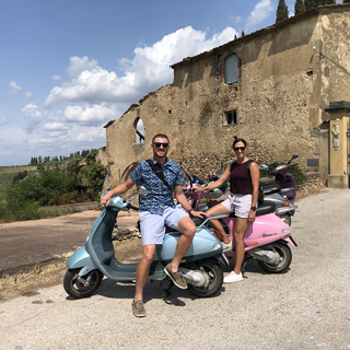 From Florence, we booked a bicycle/wine tour through the Chianti region in Tuscany. Luckily for us (or maybe it was our stupidity) - no one else had booked the bicycle tour in the 90+ degree heat in the middle of the day - so we got upgraded to Vespas at no extra charge to join a small group tour for the day. We drove about 45 minutes up to a local wine producer's farm, where 2 of our group stayed for their wine tour while the other 4 of us went with our guide and Vespas. Cruising around the Tuscan countryside, through vineyards and olive trees, was about as spectacular as we imagined, and even better when we returned for lunch at the vineyard and to sample wines produced there, as well as learn about the history and their process of making wine. After a few hours, and a few more drinks, we were fast friends with the other 4 - 2 guys from France and 2 girls from Lichtenstein. Upon our return to the city, we reflected on what a wonderful day again and, of course, made the nightly trek up the hill to watch the sunset on our last night in Florence.
