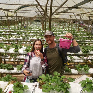 We arrived in Bringchang, a town in the Highlands, right as it started pouring. As the Highlands name implies, we were in an elevated part of the country, which broke the humidity from the lowlands into bouts of rain each day. Since we couldn't start any of the hiking activities that we wanted to do, we had the perfect opportunity to hit some of the “tourist” attractions here. We quickly learned many are a bit tacky, albeit fun, and is more geared towards families than a middle aged (Nicole wrote "middle aged," Kyle thinks we're still young), adventurous traveling couple (I think we can all agree we fall in to middle aged now?). We started with the famous Big Red Strawberry Farm where after exploring, we of course had to try nearly every food on the menu (they had strawberry EVERYTHING: waffles, ice cream, milkshakes, tea, scones, pancakes, etc). We ventured through the greenhouse on the way out (they also had a cactus area and a small, weird zoo). We got Chinese food for dinner (again, there is a very large presence of authentic Chinese food in this area). That evening , it was time for Kyle's stitches from Thailand to come out, so we stopped by a 7-11 to buy some scissors and Nicole (very carefully and with great expertise…..) took them out.