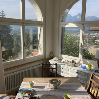 We arrived in Bern, Switzerland later that evening and took a train down to Thun. Our first impressions were: #1, Switzerland is just as beautiful as we remember and #2, Holy cow is it expensive (which you'll get tired of hearing as we continue to post, much like the Swiss citizens get tired of foreigners saying it). Our train ticket for a less than 20 minute ride was ~$20, while a similar ride in the other countries we had been to thus far were in the $3-5 range. When we arrived in Thun our Workaway host, Regula, was there to greet us at the train station. Here we'd be staying for the next 4 weeks, with a place to sleep and meals provided in exchange for varying types of work. While we had had some small exchanges via WhatsApp with Regula leading up to the meeting, we weren't really sure what to expect. However, it was immediately evident that not only was she just as kind and warm as her previous reviews had suggested, but also hilarious and down-to-earth to boot! Despite the late arrival time, and her early work schedule, she had a hot meal and a shot of Rotelli (Kyle's new favorite liquor) waiting for us at "home." And honestly, this really would end up being our home away from home.