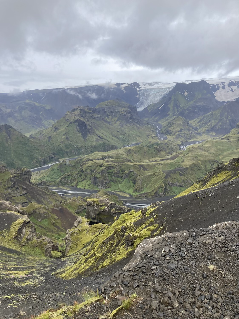 The last 2 days in Iceland were full of surprises. As hoped for, once the weather began to clear up we booked a return bus ticket from Thórsmörk to Skógafoss so we could hike the Fimmvörðuháls hike point to point going in to the valley….a total of 16 miles. There was only 1 bus that leaves the valley daily as it is rugged terrain, requires 4x4 (at least, there were many 4x4 vehicles that struggles to make it into the valley) and takes about 2 hours.....but that was then end of the journey, so back to the beginning: We started fairly early (it was a "Kyle sunrise" which means the sun was well overhead by the time we started) after camping at the base - once again in the Dokker. The first step of the hike was a stair, followed by a few hundred additional stairs. Luckily, Nicole already had her coffee so no complaints were made. We then ascended through the valley alongside Skóga River, where many trail reports had mentioned 11-25 waterfalls. We tried to keep track but quickly lost count as we began debating exactly what height of tumbling water constitutes a waterfall and what doesn't (Kyle forgets he is an UNEMPLOYED engineer and doesn't need to overthink these things for the time being)….however, we can tell you, official or not, each part of the valley was breathtaking. After about 5 miles the landscape switched to recent volcanic rock (as opposed to "old" volcanic rock, or "ancient" volcanic rock, or "we're-starting-to-get-tired-of" volcanic rock. At this point we started to see snow on the trail as we progressed between the Eyjafjallajökull and Mýrdalsjökull glaciers (seriously, we are offering real cash money in leftover Krona for whoever gets these pronunciations correct). We hiked for about another 3 miles to reach Baldvinsskali mountain hut - our halfway point - and to stop for a little lunch. It was very cold, windy, and had minimal shelter so we ate and moved quickly on. The snow trekking was easier than we expected, well packed but not enough to be icy/slippery. We climbed up Módi, a side trail up a mountain formed by the most recent eruption in April of 2010 for a fantastic panorama before continuing on.